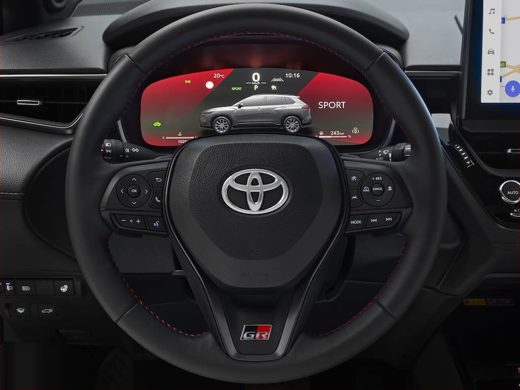 Još jednu veliku novost donosi uvođenje GR SPORT izvedbe po prvi put u ponudu Corolle Cross. Ona nudi agilniju, responzivniju i zabavniju vožnju, uz prepoznatljive vizualne detalje. Potpuno strojno obrađeni 19-inčni crni aluminijski naplatci, posebna prednja rešetka i sjajni crni Toyota logo stvaraju hrabar vanjski izgled, dostupan u ekskluzivnoj dvobojnoj nijansi Storm Grey. U unutrašnjosti, sjedala presvučena BRIN・NAUB® materijalom – sintetičkom kožom nalik brušenoj koži – sadrže GR logotipe i izražene crvene šavove za dinamičan, sportski dojam.