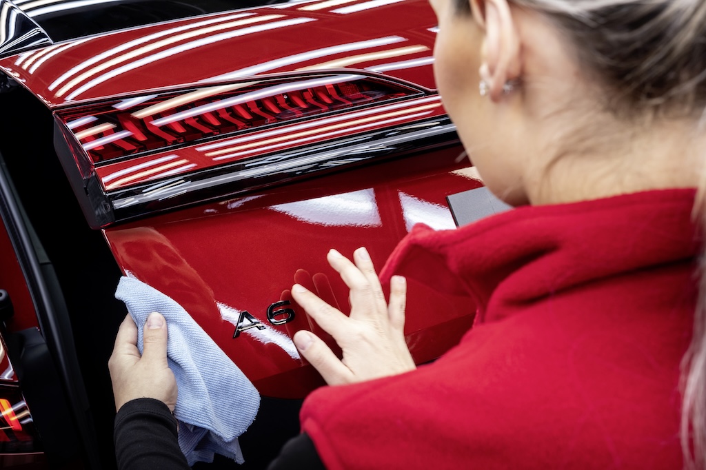 Zahvaljujući dugom međuosovinskom razmaku, velikim kotačima i skulpturiranoj karoseriji novi Audi A6 Avant savršenih je proporcija. Kombinacija čistih površina i dinamičnih linija daje mu izraz elegancije i sportskog duha. Tome pridonose i kombinacija širokog traga i snažnih ramena s produženim poklopcem motora. Pojednostavljen jezik dizajna modela prenosi funkcionalan i bezvremenski karakter. Prednji dio vozila karakterizira nisko postavljen Singleframe koji se proteže do donjeg ruba prednje maske. Zajedno s tankim glavnim svjetlima i reljefnim Audi prstenovima, modelu A6 Avant daje upečatljiv, fokusiran i prepoznatljiv izraz. Trodimenzionalno modelirane zračne zavjese ispod glavnih svjetala daju braniku snažan i sportski izgled. Tri linije koje se protežu cijelim bočnim dijelom daju mu dinamičan karakter, a dvije od njih oblikuju naglašene mišićave dijelove koji predstavljaju quattro pogon na sve kotače. Quattro krugovi moćno strše iz područja ramena na prednjim i stražnjim kotačima i podsjećaju na Audi Ur-quattro i ključni su element DNK dizajna marke Audi. „Učiniti tehnologiju vidljivom“ središnje je načelo dizajna marke. Treća linija proteže se preko praga, vizualno povezujući prednji i stražnji dio vozila i odaje dojam kretanja modela A6 čak i kada miruje. Naglašena, napeta linija krova prelijeva se u upečatljiv krovni spojler koji se proteže preko sportskog, blago nagnutog stražnjeg stakla. Strmo postavljeni D stupovi, koji čvrsto sjede na stražnjim quattro krugovima, naglašavaju sportski izgled modela A6 Avant ako ga gledamo sa strane. Kao i prednji dio, skulpturirani stražnji dio s istaknutim Audi prstenovima također odiše prestižom. Dva elegantna stražnja svjetla svojom preciznom grafikom i kontinuiranom svjetlosnom trakom naglašavaju širinu vozila. Novom Audiju A6 daju osjećaj prisutnosti, kao i okomito kočiono svjetlo bočno na stražnjem dijelu vozila. Veliki difuzor s dojmljivom ukrasnom trakom zaokružuje stražnji dio i integrira ispušne cijevi s njihovim dojmljivo dizajniranim pravokutnim oblogama.