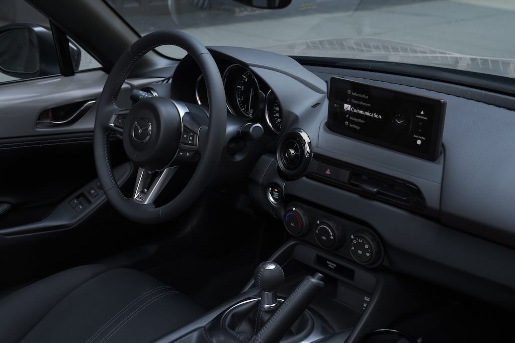 Izvana, Mazda MX-5 za 2024. ima napredna LED prednja svjetla koja se neprimjetno stapaju s dnevnim svjetlima za bolju vidljivost. Stražnja svjetla suptilno su redizajnirana. Spajajući naslijeđe i modernu estetiku, dostupna je nova boja eksterijera Aero Grey Metallic. A soft-top Mazdinog roadstera sada je dostupan i u bež boji. U kabini su sjedala presvučena novim materijalom koji sprječava proklizavanje tijekom dinamične vožnje. Ostala poboljšanja u unutrašnjosti uključuju retrovizor bez okvira, povećanu veličinu i funkcionalnost 8,8-inčnog multimedijskog zaslona osjetljivog na dodir, ažuriranu vozačevu ploču s instrumentima i dva USB-C priključka.