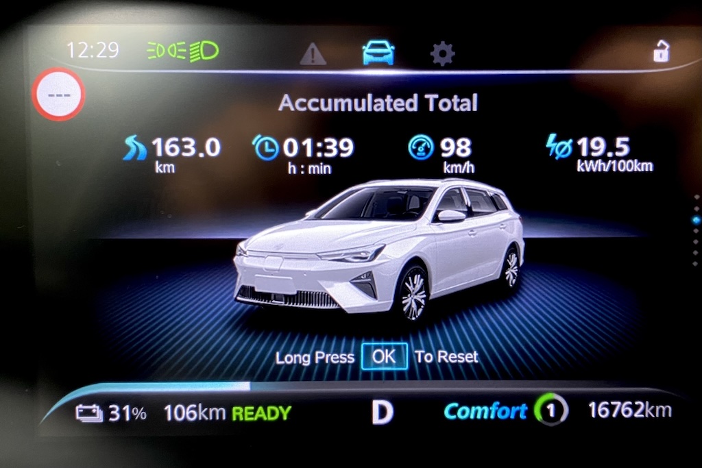 S druge strane, u urbanom okruženju, bez ikakvih posebnih vozačkih vještina u pogledu ekonomične vožnje, MG5 realno ostvaruje potrošnju između 15 i 17 kWh/100 km, a u iznimnim slučajevima i nižu, čak do 13 kWh/100 km. To znači da je tvornički deklarirani doseg od 400 kilometara itekako realističan u (urbanoj) svakodnevici, što je poznata odlika svih električnih MG modela, ali ne i nešto što bi se apsolutno podrazumijevalo u današnjoj elektro-autoindustriji.