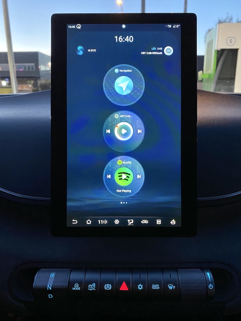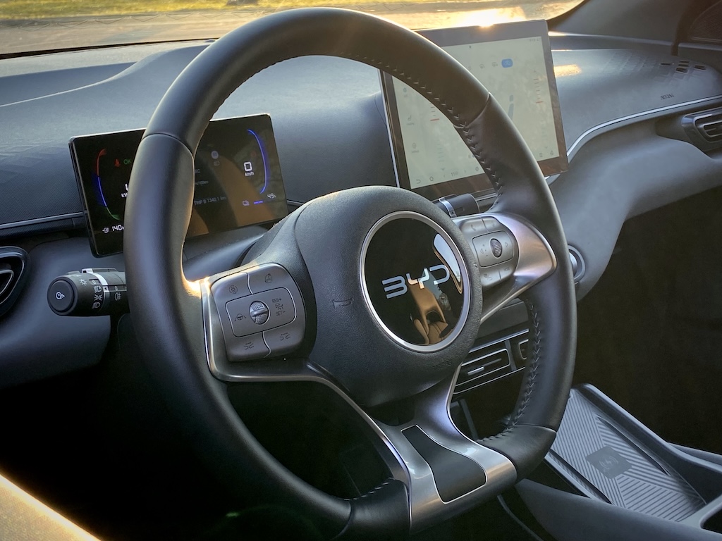 Instrumentna ploča je implementirana putem malenog digitalnog ekrana iza upravljača kojem je pridružen 10,1-inčni središnji infotainment zaslon responzivnog softvera koji se – karakteristično za BYD – pritiskom na gumb može zarotirati u vodoravni ili okomiti položaj.