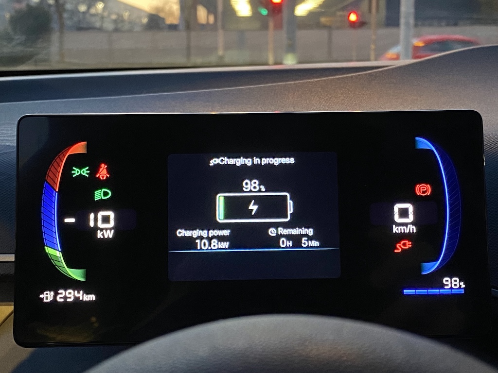 Brzina punjenja istosmjernom strujom (DC) je do 65 kW za model Active i do 85 kW za modele Boost i Comfort. U idealnim uvjetima baterija se može dopuniti za 30 minuta (od 10% do 80%). Trofazno AC punjenje brzinom do 11 kW standardno je na svim verzijama – tada potpuno punjenje baterije (0-100%) traje tri i pol sata (Active) odnosno pet sati (Boost i Comfort).