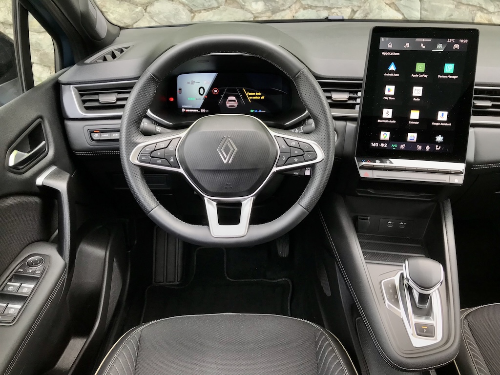 Interijer odiše harmonijom već poznatom iz Captura, u tipičnoj maniri iconic paketa opreme. Prevladava osjećaj komfora, ali i sportskog dinamizma, naglašen profiliranim, električno podesivim prednjim sjedalima s ručnom lumbalnom potporom (ali bez funkcija masaže ili ventilacije) te grijanim kožnim upravljačem. Vozač u trenu pronalazi idealan položaj, a ulazak ne zahtijeva “penjanje”, kao kod SUV-ova. Dašak visoke klase donosi opcionalni panoramski krov Solarbay, savršeno integriran u estetiku vozila, ali i vješto komponirani zvukovi u kabini, od upozorenja do unutarnjih povratnih informacija, koje potpisuje Jean-Michel Jarre, što potvrđuje Renaultov fokus na akustički doživljaj tijekom boravka u automobilu.