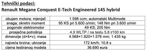 Tržište SUV vozila se neprestano razvija, što povećava i broj varijacija na temu, najčešće u obliku dizajnerskih rješenja. Današnji trendovi rezultat su kombinacije želja i mogućnosti, pri čemu istaknutu ulogu imaju navike kupaca, mogućnosti proizvođača i zakonitosti tržišta. Jedna od najuspješnijih interpretacija unutar SUV segmenta je SUV coupe, poput Meganea Conquesta. Zanimljiva je to vizija francuskog brenda koji si je postavio cilj da ovaj specifični segment obogati pristupačnim proizvodom odličnog omjera cijene i kvalitete. Naime, ekskluzivan dizajn SUV coupea od početka je bio izraz premium stila i time rezerviran za uski krug skupljih marki, ali je dolaskom Conquesta ta nedemokratska podjela konačno prevladana. Renault je mudro i bez previše komplikacija pretočio koncept u niži cjenovni razred. Šlag na torti bilo je uvođenje E-Tech pogona, interno razvijenog u Renaultu, koji pruža visoku učinkovitost u svim okolnostima, uz potrošnju gradskog automobila.