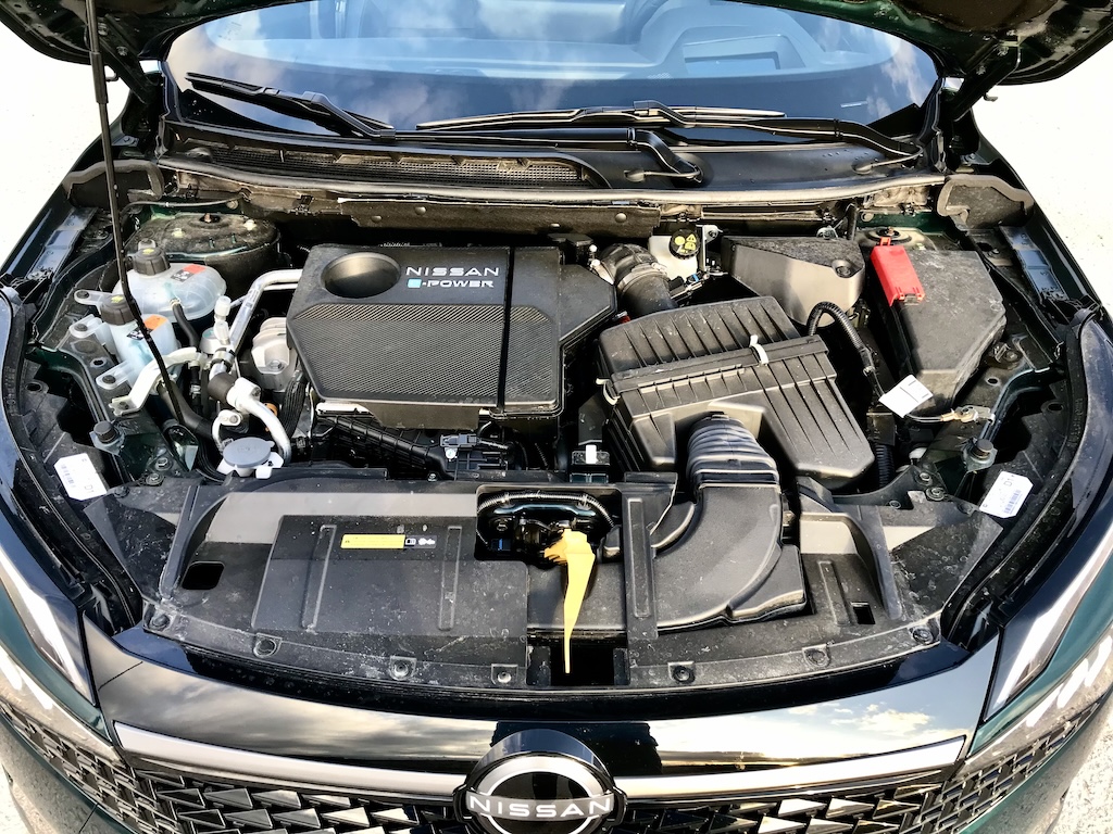 Opravdano se postavlja pitanje – zašto je odabrana ova hibridna shema? Pod pretpostavkom da benzinski motor radi u optimalnim uvjetima, učinkovitost sustava trebala bi biti veća od one kod tradicionalnih hibridnih pogonskih sustava, u kojima je benzinski motor izravno uključen u pogon. Nadalje, e-Power ne zahtijeva mjenjač, samo izbornik smjera vožnje, što smanjuje masu i unutarnje trenje. Rezultat je subjektivno moćan i živahan automobil (elektromotor razvija ozbiljnih 190 KS i 330 Nm) koji se vozi linearno i fluidno, kao da radi na struju (što i čini), a sve bez potrebe za punjenjem baterije i bez straha od limitiranog dosega.