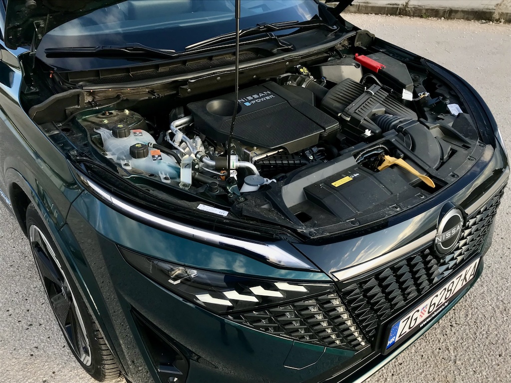 Sve navedeno samo je okvir za vrhunsku tehnološku poslasticu – e-Power pogonski sklop koji nudi iskustvo poput vožnje električnog automobila, iako je u suštini hibrid. Riječ je o serijskom hibridnom sustavu koji za pogon isključivo koristi elektromotor, a struju proizvodi trocilindrični turbobenzinski motor s promjenjivim omjerom kompresije, ali i obujma (postiže se neznatnim variranjem hoda klipova). Ovisno o uvjetima vožnje i zahtjevima vozača, električna energija se pohranjuje u bateriji od 1,97 kWh, šalje izravno elektromotoru ili se oboje događa istovremeno.