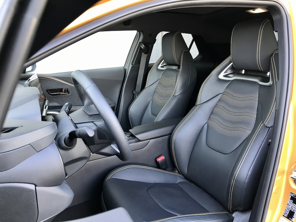 Putnički prostor testiranog 2.0 HEV Premiere izgleda sportski i elegantno, s uzornom ergonomijom, sjajnom završnom obradom i visokokvalitetnim eko-recikliranim materijalima tipičnim za Toyotu, kao što je PET dobiven od plastičnih boca ili čak polimeri dobiveni iz ribarskih mreža. Interijer je izveden u izrazito skulpturalnom stilu eksterijera, pri čemu dizajn ne ugrožava funkcionalnost ili praktičnost. Ambijentalno osvjetljenje, središnja konzola okrenuta prema vozaču i briljantni zasloni – uz iznimnu tišinu tijekom vožnje – doprinose ugodnom boravku u vozilu i nedvojbeno “guraju” C-HR u smjeru Lexusa.