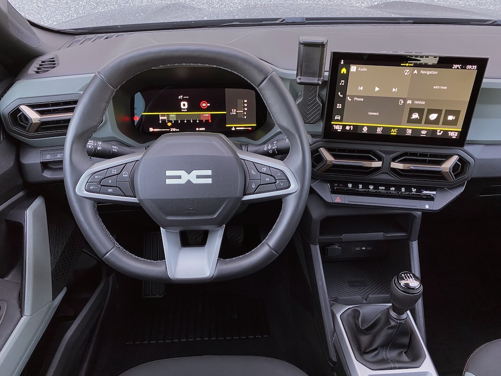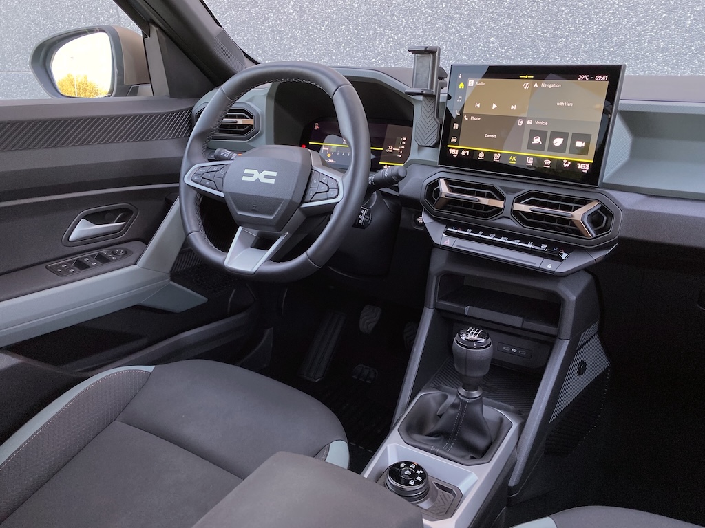 Zauzimamo mjesto za upravljačem i tražimo idealnu poziciju za vožnju. Bigster ima nesumnjivo najbolja Dacijina sjedala ikad (uz Dusterova), a s paketom opreme Extreme dolaze i posebne, terenskoj uporabi primjerene presvlake koje se navodno lako peru. Nismo to testirali, ali smo osjetili da pri ljetnim temperaturama sjedala “ne dišu” i potiču znojenje, stoga razmislite o tome prije kupnje. Favoriziramo povišeniji položaj sjedenja, jer se time popravlja nagib sjedala i ono pruža bolju potporu, makar i nije osobito profilirano. U Bigsteru ne manjka prostora u visinu, ni uz panoramski stakleni krov s mogućnošću otvaranja, koji je sastavni dio paketa Extreme. Tako smješten za volanom, vozač vidi rub horizontalno postavljenog poklopca motora i zamišlja sebe kao “kralja ceste”, uz osjećaj slobode koji ta fraza odražava.