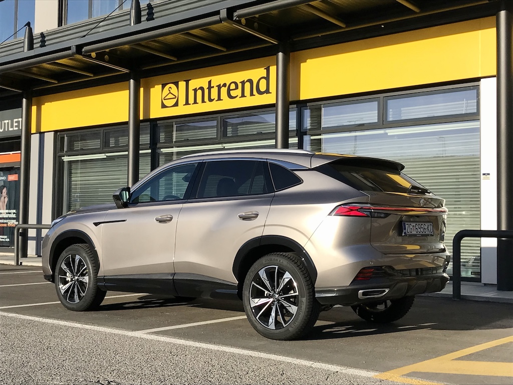 Pregled noviteta otvaramo testom HS-a, najvećeg i najluksuznijeg novog MG-a. Nastupa samouvjereno i donosi jednu posve novu priču – ne može se reći da nastavlja tamo gdje je njegov prethodnik stao. Naprotiv: kvalitativni iskorak vidljiv je u obliku odlučnog i snažnog, ali elegantnog i nadasve ekskluzivnog vanjskog dizajna koji dolazi iz MG-ovog londonskog studija. HS autentično ocrtava otmjeni, aristokratski engleski stil. Ukratko, MG je stvorio ono što je tržištu nedostajalo – atraktivno vozilo upečatljivog izgleda koji je definiran oštrim prednjim svjetlima, ne pretjerano velikom rešetkom usisnika zraka i dinamičnom bočnom siluetom. Odvažan dizajn sa sobom donosi više vrijednog sadržaja zahvaljujući međuosovinskom razmaku povećanom za 45 mm (na 2,77 m), što se prevodi u luksuzniji prostor za putnike, posebno u drugom redu.