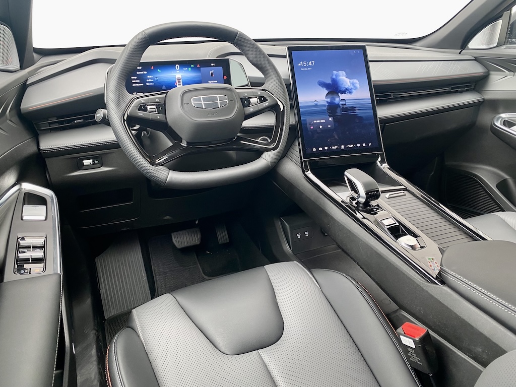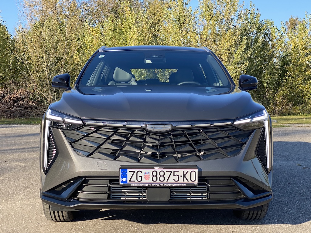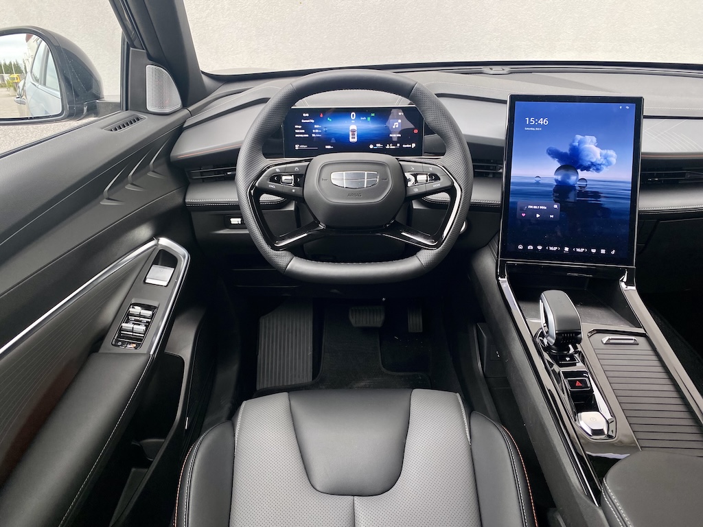 Ni unutrašnjost nije kopija interijera nekog drugog modela, već je Geelyjev original, što danas nije mala stvar i možda se najmanje očekuje od kineskog automobila. Blago futuristički ambijent vrlo je privlačan i ugodan oku. Armaturna ploča je zanimljivo oblikovana, u kombinaciji tvrdih i mekih površina, teksturirane plastike i dekorativnih detalja – ali bez stilskog pretjerivanja – na razini iznad cjenovnog razreda kojem vozilo pripada. Važno je istaknuti da je sve čvrsto i precizno spojeno, poput premium proizvoda.