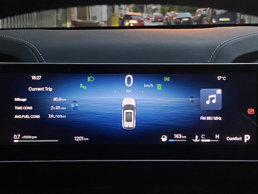Kokpit je izrazito minimalistički i gotovo da nema fizičkih kontrola, jer se većina funkcija kontrolira putem središnjeg vertikalnog zaslona. Mada se i takvo rukovanje može uvježbati, potrebno je reći da autoindustrija raspolaže i jednostavnijim, korisniku prilagođenijim rješenjima. Spomenimo da FM radio ne poznaje RDS i da se zrcaljenje Androida ostvaruje aplikacijom AutoDo, dok se Apple uređaji povezuju uobičajeno, Carplayom.