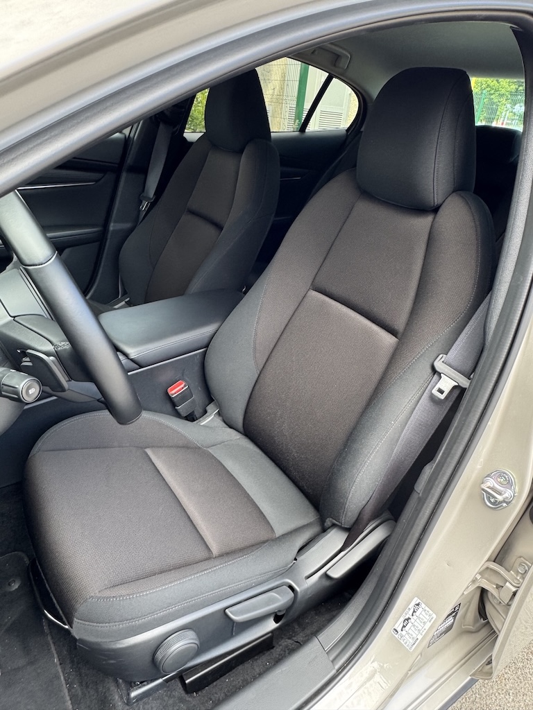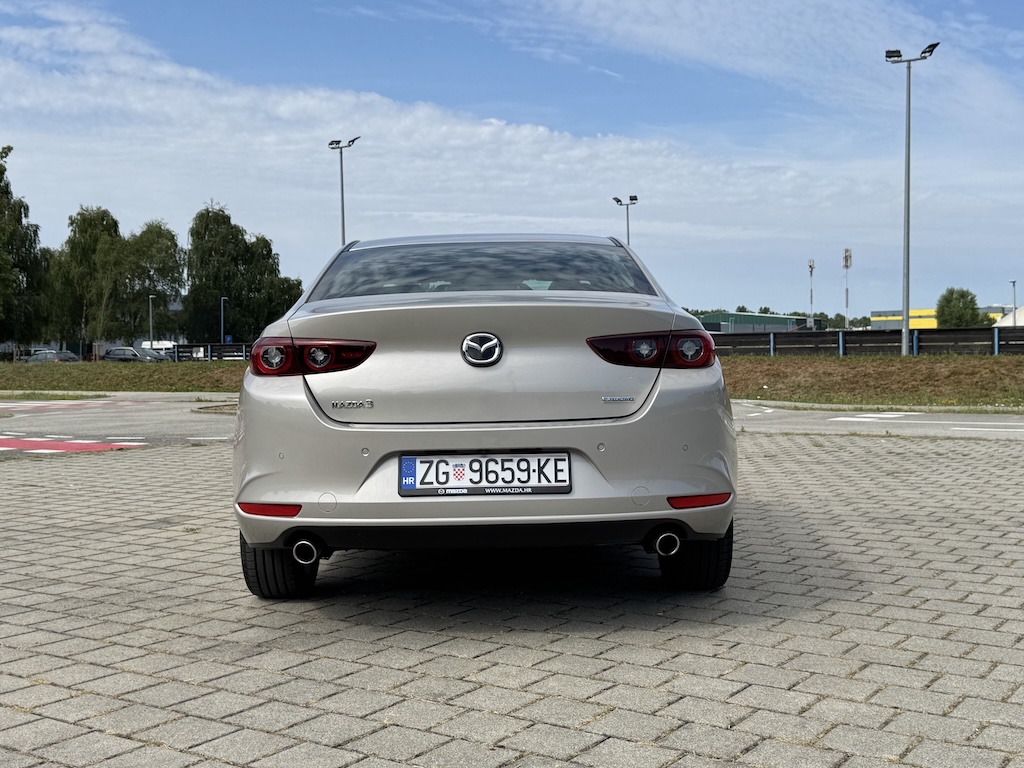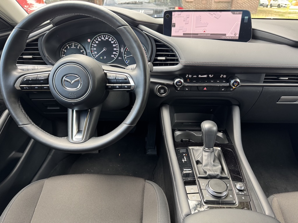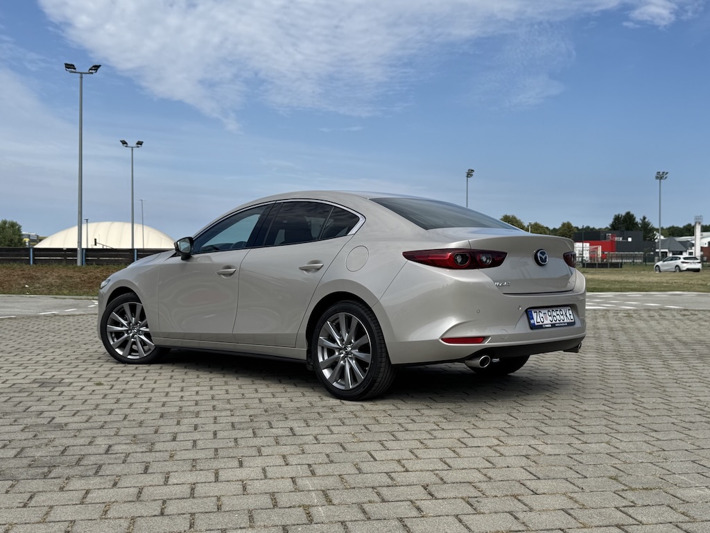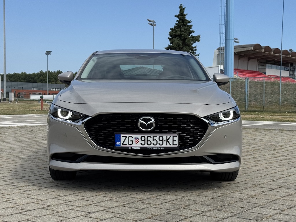 Iako se ne radi o posljednjem modnom hitu Mazda3 još je uvijek atraktivnog izgleda, modernih i uglađenih dizajnerskih linija te vrlo prepoznatljivo – Mazda. Elegantna linija vanjskog dizajna pretočena je i u unutrašnjost koja već na prvi pogled otkriva vrlo kvalitetne materijale te kvalitetnu završnu obradu koje se ne bi posramili ni modeli iz višeg segmenta. Kodo dizajn eksterijera Mazde3 pretočen je i unutrašnjost, minimalističkog dizajna ali sa svime potrebnim u modernom automobilu današnjice. Prevladavaju horizontalne linije koje dodatno optički čine unutrašnjost ove Mazde još širom i prostranijom. Unutrašnjošću dominira velik središnji zaslon (10,25”) sa intuitivnim načinom upravljanja za koji nije potrebna prilagodba vozača. Na središnjoj konzoli je odlično ergonomski smješten tzv. Commander Control koji bira menije kružnim pomicanjem te pritiskom. Jasno jednostavno te vrlo praktično u korištenju.
