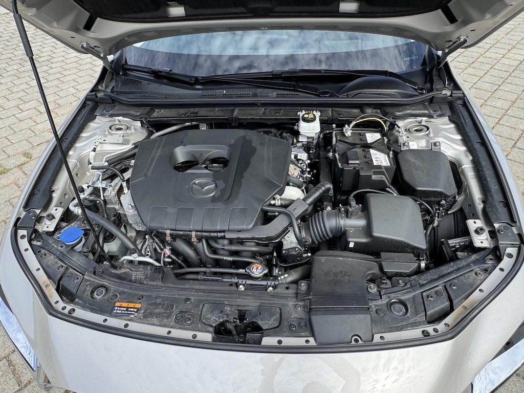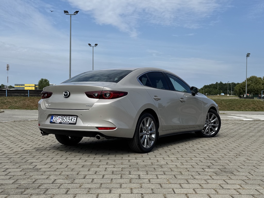 Aktualna Mazda3 dio je filozofije Kodo – duša pokreta dizajna Mazde ali ćemo se prvo usredotočiti na dušu koja je u ovom slučaju pogonski agregat. Radi se o 2,5 litrenom četverocilindrašu bez turbo punjača, dakle o nečemu što je danas gotovo nemoguće pronaći na tržištu obasipanom downsizing motorima. Ovaj motor iz e-Skyactiv G generacije opremljen je i Mazdinim M Hybrid sustavom koji nudi vrlo dobre performanse uz smanjenu potrošnju goriva. Motor e-Skyactiv G razvija 140 KS uz najveći okretni moment od 238 Nm pri 3.300 o/min. Potrošnja goriva također je primjerena aktualnim WLTP standardima za ovaj segment vozila te iznosi prema navodima 6,0 l/100 km u mješovitom ciklusu. U praksi tijekom sedmodnevne vožnje u vrlo različitim uvjetima potrošnja nam nije prelazila 8 l/100 km. Naravno da se radi o motoru koji zadovoljava najnovije WLTP propise. Ovaj motor ima naprednu tehniku deaktivacije cilindara i Mazda M-Hybrid sustav. Svi modeli Mazde3 s motorima e-Skyactiv generacije standardno su opremljeni 24V blagim hibridnim sustavom, koji pomaže u smanjenju potrošnje goriva. ISG (Integrirani starter generator) pretvaraj kinetičku energiju dobivenu retardacijom u električnu energiju te je pohranjuje u li-ion bateriju.