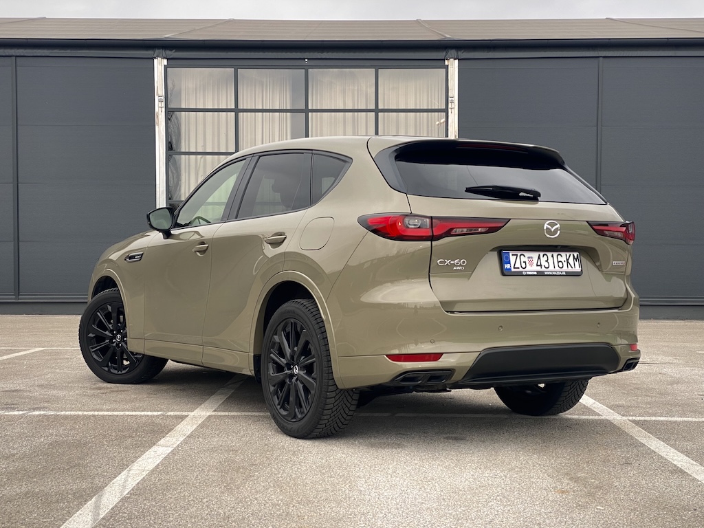 Mazda CX-60 ima nešto što njezini konkurenti iz D-SUV segmenta nemaju: motor sa šest cilindara! Premda osnovni model košta svega 44.483 eura (bez metalik boje, ali uz bonus ‘staro za novo’), pod dugačkom prednjom haubom ima šestocilindarski dizelski motor, uz pogon na stražnje kotače. CX-60 u svim izvedbama dolazi na 20-inčnim aluminijskim naplatcima i standardno je opremljen 8-stupanjskim automatskim mjenjačem. A to je tek početak.