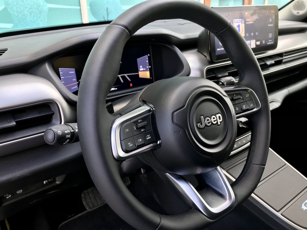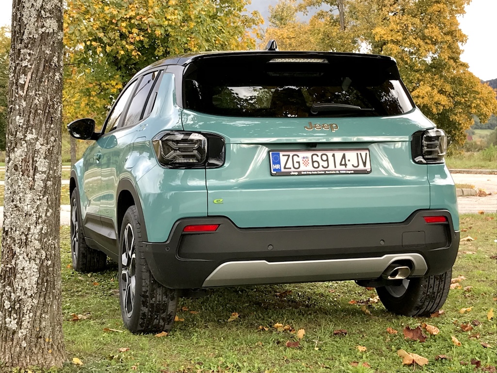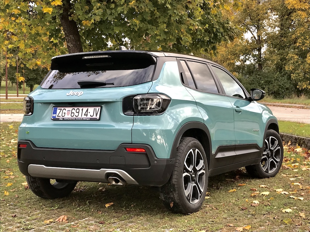 Estetski gledano, e-Hybrid se ne razlikuje od električnog Avengera – naprotiv, promatramo iste proporcije i dizajn. Ovo je školski primjer B-SUV-a, s prtljažnikom obujma 380 litara. Njegov mišićav, odvažan dizajn izdvaja ga iz gomile sličnih modela. Snažne linije sprijeda otkrivaju tipične stilske elemente marke, poput sedam okomitih proreza između LED farova. I stražnji dio karoserije je znalački isklesan, s kratkim prevjesom i atraktivnim svjetlima. I da vozilo nema amblem Jeepa, svi bi ga prepoznali kao Jeep. Udaljenost od tla je 20 cm, prilazni i prijelazni kut 20 stupnjeva te odlazni čak 33 stupnja – Avenger je dobro pripremljen za terenske izazove, osim za one najteže.