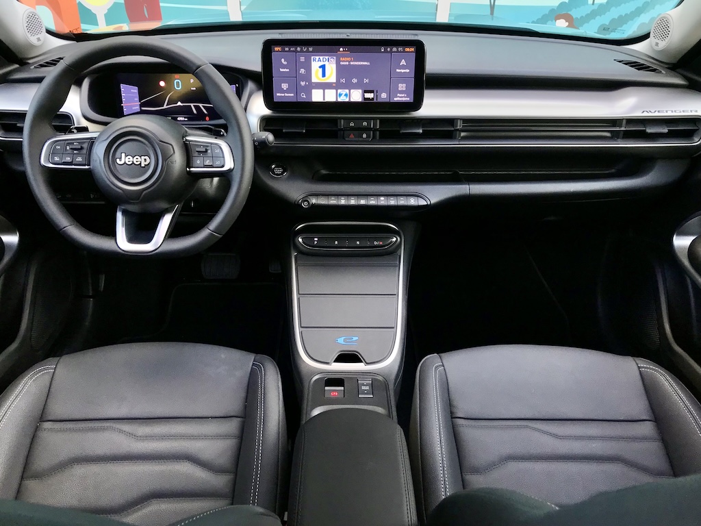 U kompaktnu putničku kabinu ulazimo preko širokog praga prednjih vrata. Viši vozači morat će optimizirati položaj za upravljačem spuštanjem sjedala do minimuma, no ergonomija je za pohvalu – sjedala dobro drže u zavojima i ne zamaraju na dugim putovanjima. Putnici u drugom redu nemaju puno prostora za noge, nemaju središnji naslon za ruku, niti stropne ručke s kukicama za vješalice. Preglednoj digitalnoj instrument ploči pridružuje se strukturiran, intuitivan infotainment, a zadržane su i neke fizičke tipke – na upravljaču i na središnjem grebenu. Unutrašnjost Avengera je u racionalnom skladu s potrebama svakodnevne uporabe, s brojnim praktičnim pretincima za sitnice i prikljčcima za pametne telefone.