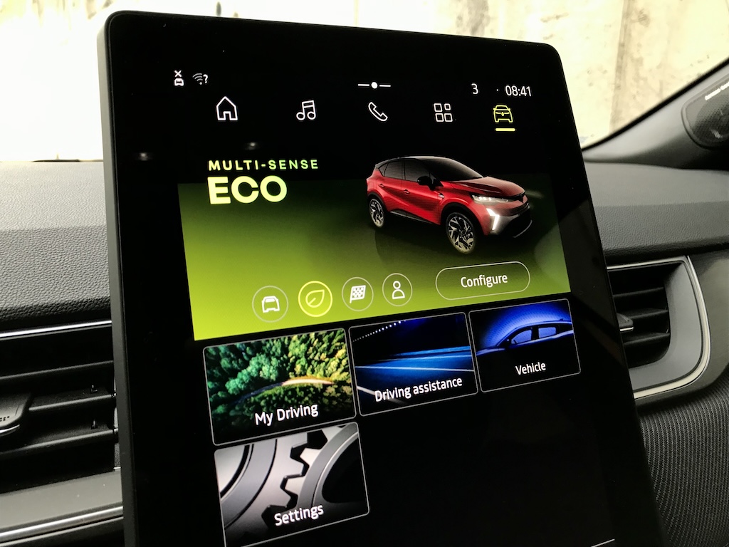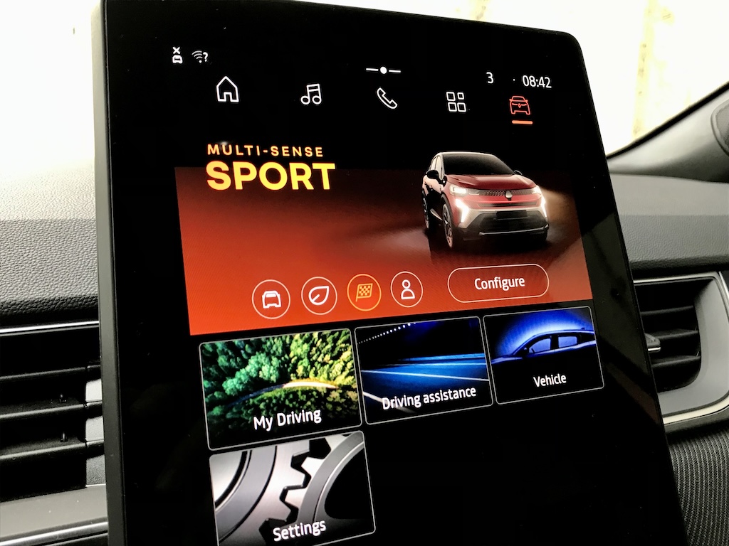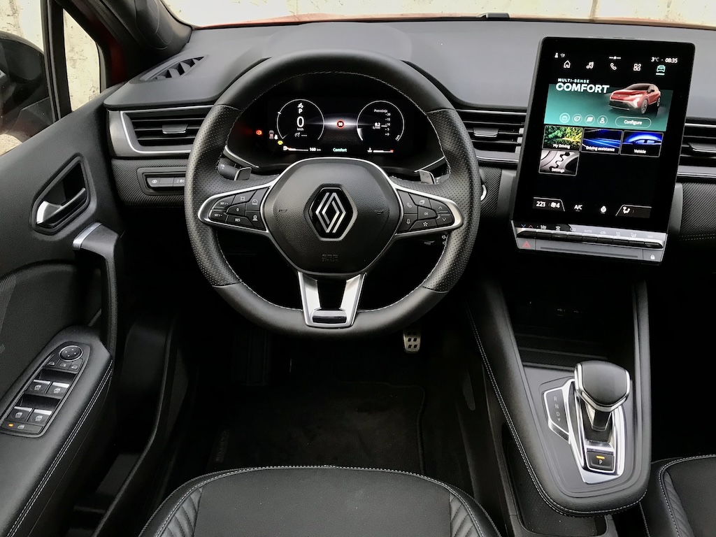 Captur esprit Alpine nam se svidio od prvog trenutka. Kabina je pažljivo izrađena od poda do krova i ostavlja dojam visoke kvalitete. Kokpit je obogaćen decentnim detaljima poput francuske trobojnice, unikatnih sigurnosnih pojaseva ili umetaka od brušenog mat-krom aluminija plavičastog sjaja – sve u znaku Renaultove sportske podmarke Alpine. Preglednost je izuzetna, a oprema natprosječna. Središnji tablet vertikalne orijentacije je velik, ali ne prekriva niti jedan kvadratni milimetar pogleda na cestu. Bitne funkcije imaju fizičke tipe, primjerice isključivanje stop-start sustava ili – što je danas još važnije – aktiviranje personalno konfiguriranog ADAS sustava, dodirom na tipku My Safety. Blago povišena, ergonomska sjedala i upravljač nešto većeg promjera upućuju na SUV visoke klase što potvrđuju i središnji ventilacijski otvori za stražnje putnike te robustan naslon za ruku između prednjih sjedala. Dodatan moment je grijani upravljač, pa iznenađuje da prednja sjedala nisu grijana.