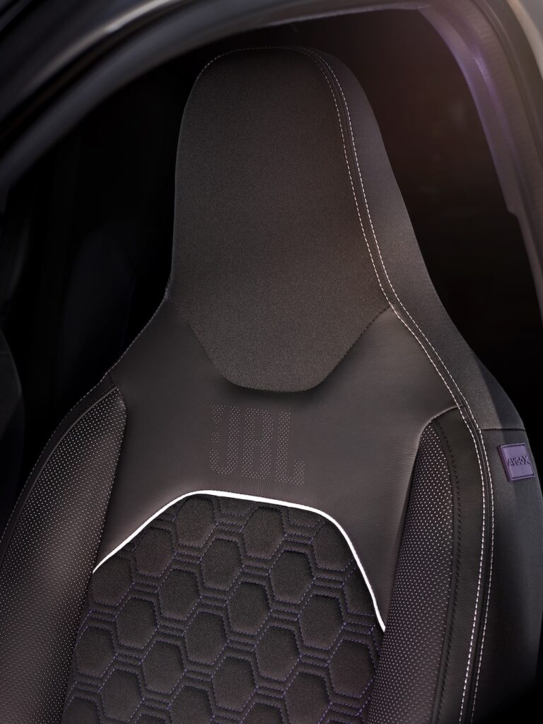 Kako bi dodatno naglasili premium JBL audio sustav, Aygo X JBL ima jedinstvene oznake i vizualne potpise izvana i iznutra. JBL logo krasi stražnji dio automobila, dok su elementi reproducirani na stražnjem staklenom panelu. Unutra, kompaktna, ali prostrana unutrašnjost, premium sjedala s usklađenim bojama uključuju JBL logo, tako da kupci mogu uživati u vožnji u stilu i udobnosti.