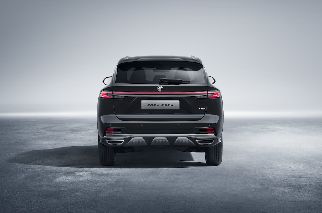 Novi MG HS ima upečatljiv dizajn temeljen na dužem međuosovinskom razmaku što donosi više prostora u kabini i poboljšanje vanjskih dimenzija, čime do izražaja dolaze profinjene bočne linije i elegantne staklene površine. U usporedbi s prethodnim modelom, novi MG HS je 14 mm širi (sada 1.890 mm) i 26 mm dulji (sada 4.636 mm), dok njegov novi elegantan profil smanjuje njegovu ukupnu visinu za nekih 30 mm (sada 4.655) . Međuosovinski razmak produljen je za 30 mm na 2.750 mm, naglašavajući sportsku siluetu i pri tome povećavajući udobnost vožnje i unutarnji prostor. Dizajnerski potpis nove generacije MG-a uočljiv je u HS-ovoj impresivnoj prednjoj rešetki, nedavno predstavljenoj i na modelu MG3. Tanji prednji farovi, inspirirani modernom tehnologijom, povezani sa crnom centralnom pločom naglašavaju povećanu širinu novog modela HS-a. U skladu s dizajnom prednjih svjetala, X-oblik stražnjih LED svjetala predstavlja prepoznatljiv svjetlosni potpis HS modela.
