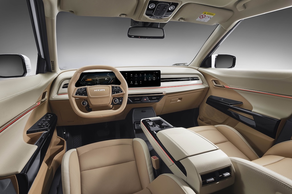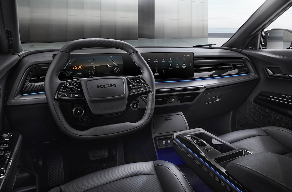 KGM na ovom modelu nudi putničku kabinu od crnog antilopa (paket Black Suede), inspiriranu modernim minimalističkim luksuzom. U prvom planu su sukladni tonovi i profinjene teksture, za što je KGM izmislio naziv “crna spokojnost” – aludirajući na tihu sofisticiranost koja djeluje moderno i vizualno koherentno. Ideja je bila stvoriti dojam majstorske, ručne izrade, dok upravljač s dvostrukim dijamantnim šavovima i pomno izvezenim detaljima pojačava osjećaj preciznosti i zanatske vještine. Zamjenom kontrastnih elemenata crnim šavovima i crnim akcentnim trakama, kabina postaje čisto i decentno luksuzna – svatko tko se fokusira na teksturu, dubinu i kvalitetu materijala, ovdje će pronaći oazu zadovoljstva.