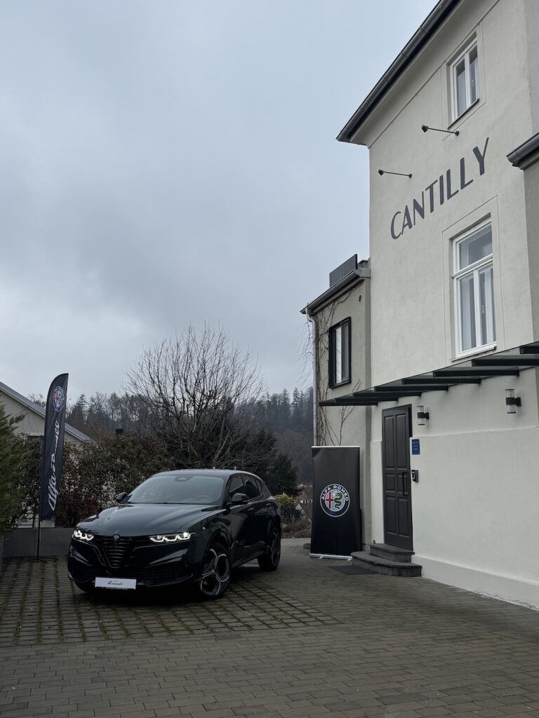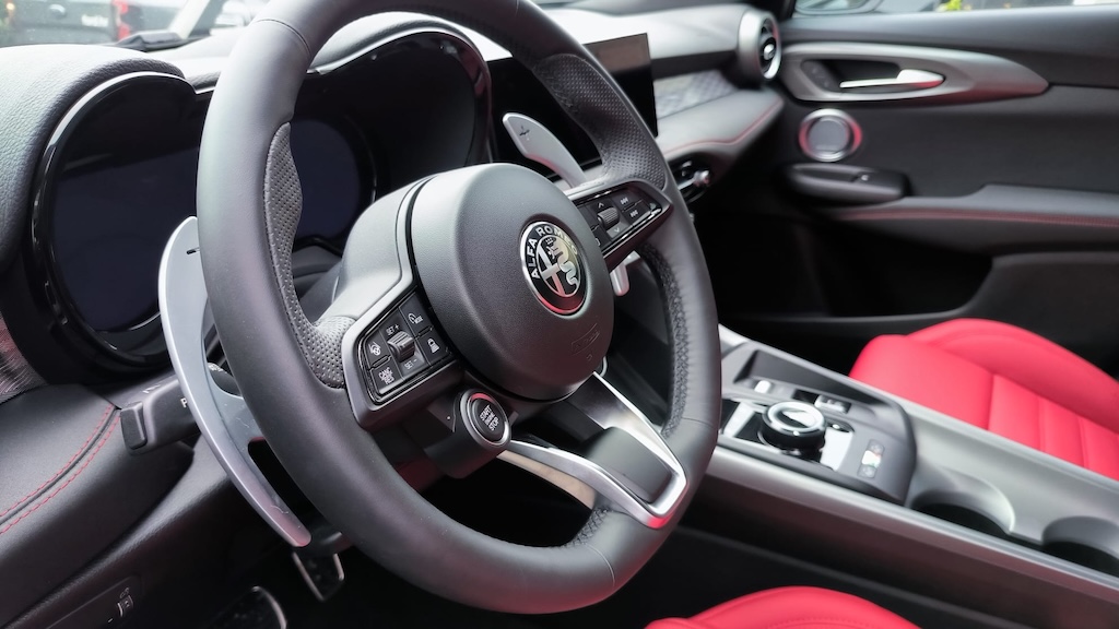 Legendarni Scudetto također je reinterpretiran kako bi se maksimizirao osjećaj horizontalnosti i odmah ostavio dojam automobila čvrsto ukorijenjenog na tlu. Osim toga, donji usisnici zraka pojačavaju obiteljski osjećaj s Alfa Romeo Juniorom, dok su dodatni bočni otvori prerađeni u trkaćem jeziku kultne Giulije GTA i GTAm.
